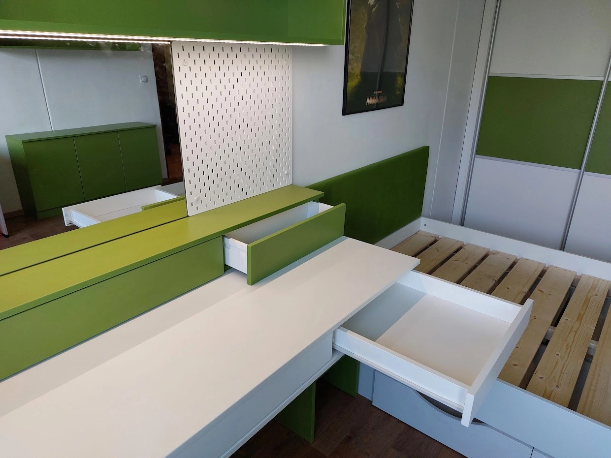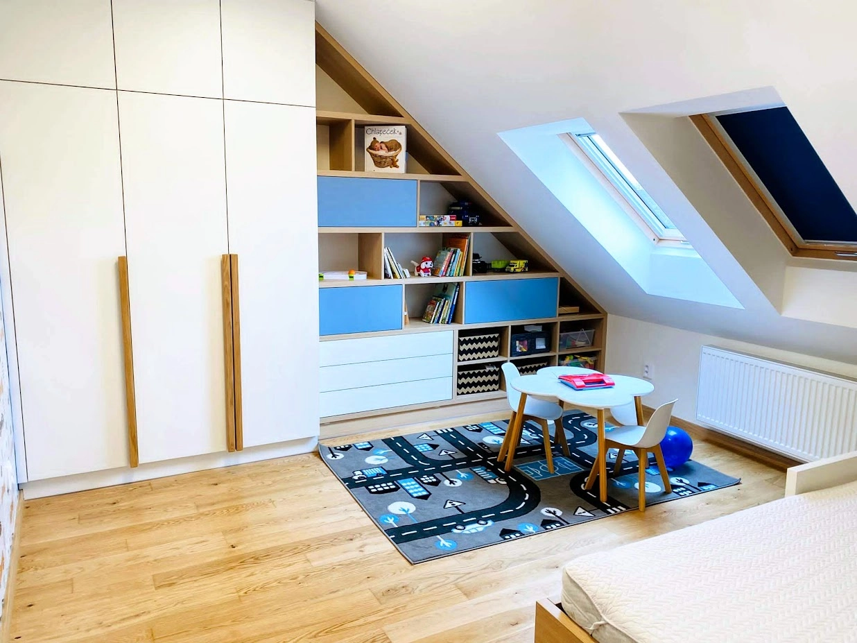 Pokoj pro kluka často nebývá zrovna obří, takže je důležité, aby každý kousek prostoru měl nějaký smysl. Ideální je sáhnout po multifunkčním nábytku – postel s úložným prostorem, komody, které poslouží jako pracovní stůl nebo i rohové regály, které nezaberou zbytečně moc místa. Všechny tyhle chytré kousky vám pomůžou udržet pokoj v pořádku a zároveň ušetří místo na všechny ty hračky, knihy, školní věci a další poklady, které kluci mají.