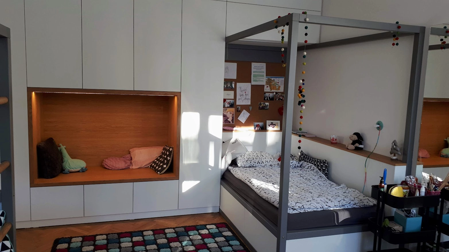 Pokoj by měl být nejenom o spaní a učení, ale také o hraní. Ať už je to prostor na legové stavby, malý koutek na skákání na trampolíně, nebo místo pro fotbalové míče, důležitý je dostatek prostoru pro pohyb.